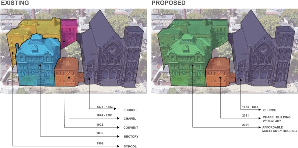 The proposed adaptive re-use of the former Sacred Heart Rectory, School and Convent helps to address both of these pressing issues by delivering a significant number of new, perpetually affordable homes in the East Cambridge community through the repurposing an existing structure with a lower embodied carbon footprint.